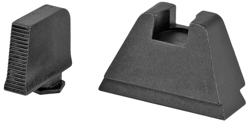 This front and rear sight set is designed for Glock pistols (Gen 1-5) and features optic-compatible suppressor height to allow co-witnessing with mounted optics. The set includes a 3XL tall serrated black front sight and flat black rear sight, both constructed from steel for durability and reliability.
