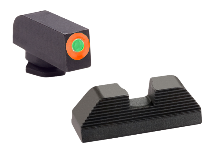 AmeriGlo Protector Sight Set for Glock, Green Tritium Orange Outline Front/Black Serrated Rear - GL436