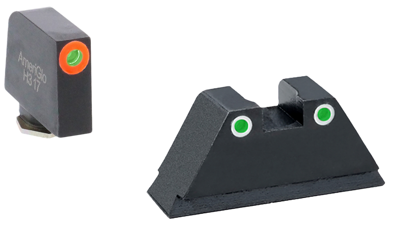 AmeriGlo GL331 Optic Compatible Sight Set for Glock - Green Tritium Orange/White Outline