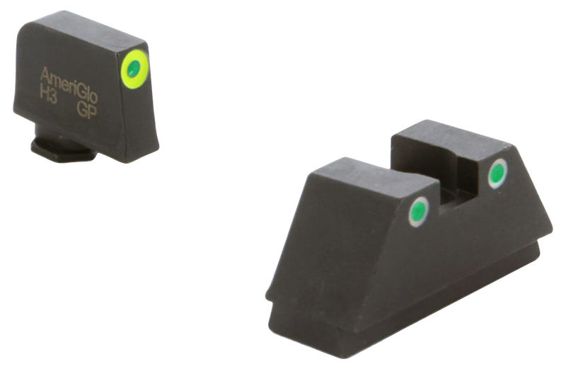 AmeriGlo GL333 Optic Compatible Sight Set for Glock - Green Tritium with LumiGreen Outline