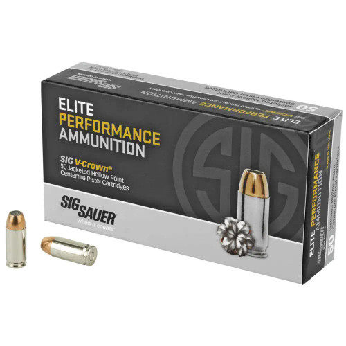 Sig Sauer 380 Auto 90gr Elite V-Crown JHP Handgun Ammo, 50rd Box - SIG E380A150