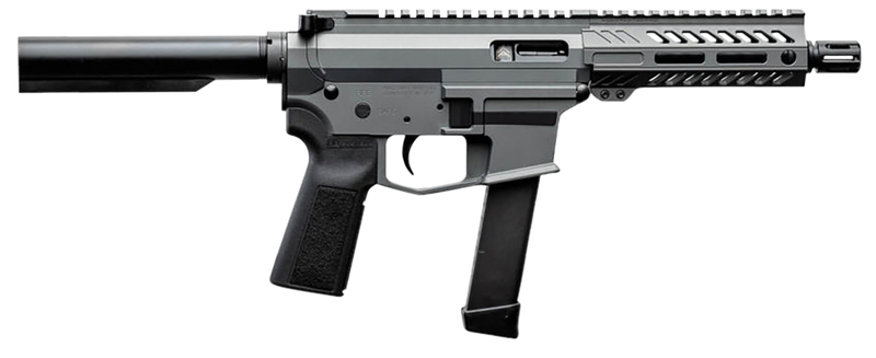 The Angstadt Arms UDP-9 is a 9mm Luger semi-auto pistol with a 6" black melonite threaded barrel and 15+1 round capacity. It features a 5.50" free float M-LOK handguard, tactical gray cerakote aluminum receiver with Picatinny rail, and black B5 grip. Weighs 5 lbs with an overall length of 22".