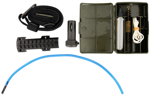 This accessory package is designed for the Century Arms AP5-M and AP5-P platforms and includes essential components for setup and maintenance. The kit contains a Picatinny rail system, OEM sling, cleaning kit, and flash hider, all finished in black. These items provide basic customization and field maintenance capability for compatible AP5 models.