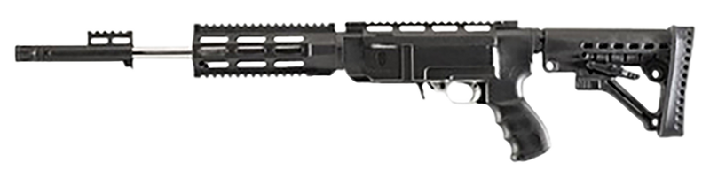 This Archangel conversion stock transforms a Ruger 10/22 rifle with an AR-15 style platform featuring a black synthetic construction and 6-position collapsible design. The stock includes a pistol grip and free-floating design with adjustable length of pull ranging from 10.25" to 14.25". Made from carbon fiber/polymer material, it provides a lightweight and durable alternative to factory stocks.