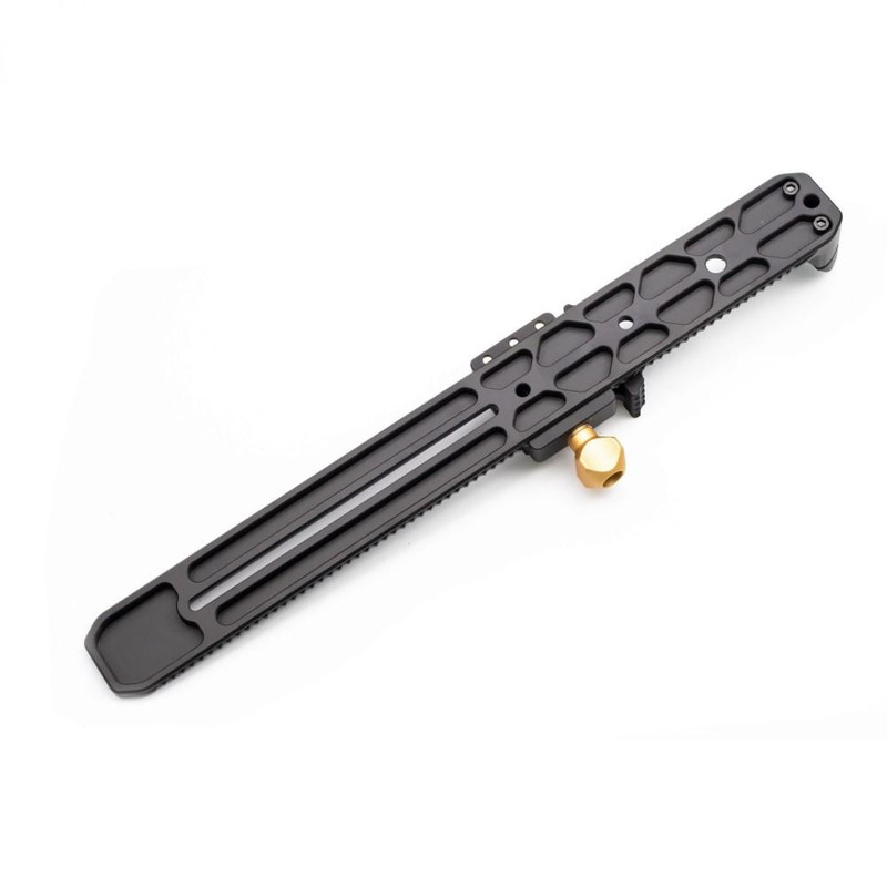 Universal barricade rail system featuring a 14" rail with integrated serrated sides that mechanically lock into the proprietary clamp design for secure, movement-free attachment. Kit includes the rail, clamp, barricade stop, and associated hardware. The universal rail design accommodates standard mounting footprints and is compatible with most shooting positions and barricade configurations.