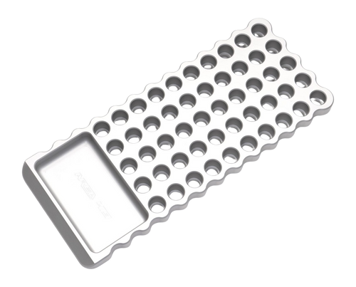 Precision machined billet aluminum loading block designed for .284 caliber ammunition (308 Magnum and Lapua bolt-faced rounds). Holds up to 50 cases with 0.500" deep holes for a tight fit that prevents tipping, and features rubber pads on the bottom to prevent sliding during use.