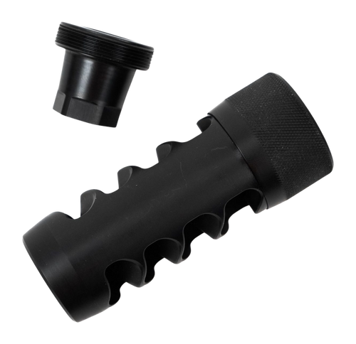 The Area 419 Hellfire Match is a self-timing muzzle brake designed for rifle calibers up to 6.5mm (.264). The brake features a black nitride finish and threads onto barrels with 5/8-24 pitch, offering reduced recoil and muzzle rise with a flatter shooting profile. Its matched timing design and optimized porting minimize blast while maintaining manageable rifle handling during firing.