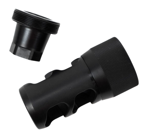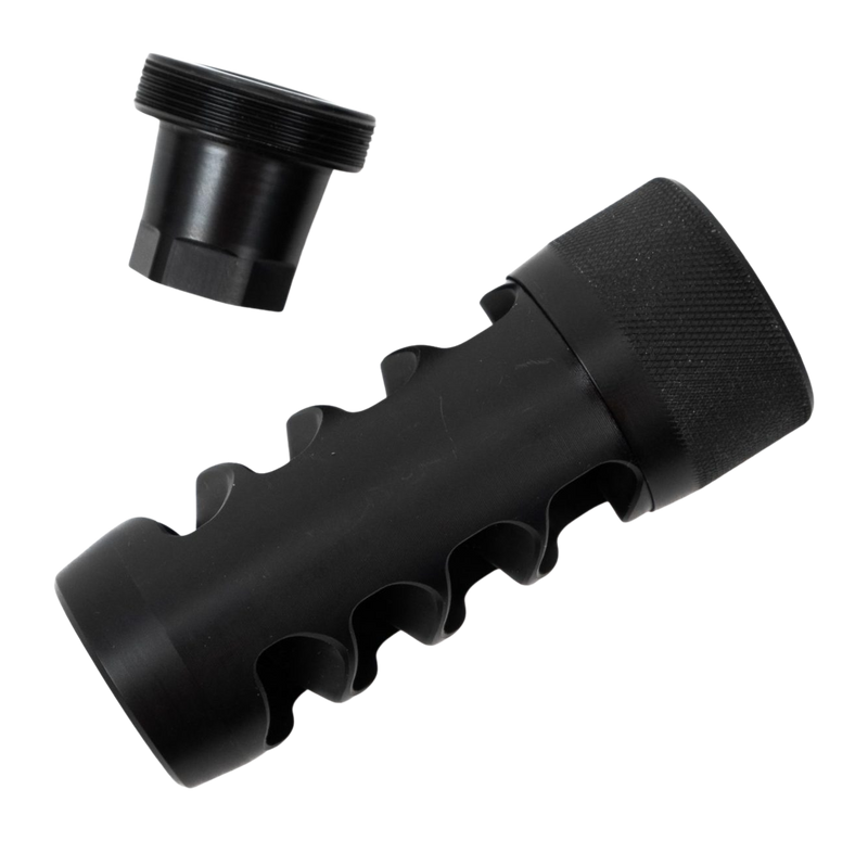 The Area 419 Hellfire Match is a self-timing muzzle brake designed for 6mm calibers (.223, 5.56 NATO, .204 Ruger, .243 Winchester, and similar cartridges up to 6mm). It features a black nitride finish and threads onto barrels with 5/8-24 pitch. The brake is engineered to reduce recoil and muzzle rise while minimizing blast signature compared to traditional designs.