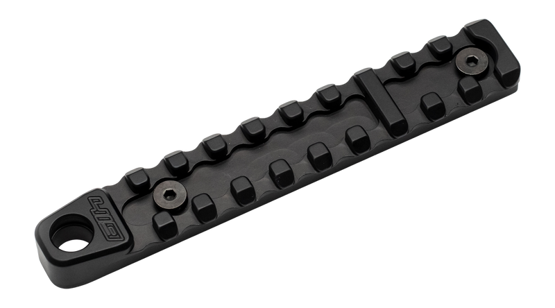 The Area 419 Improved Bipod Rail is a 4.8" long Keymod-compatible rail designed for mounting bipods and other accessories to AR-pattern rifles. Featuring 10 snag-free slots (43% more than competitors), the rail weighs only 1.09 oz and is manufactured in the USA from aluminum. Installation is via Keymod slot attachment to compatible handguards.