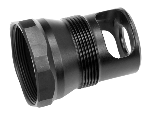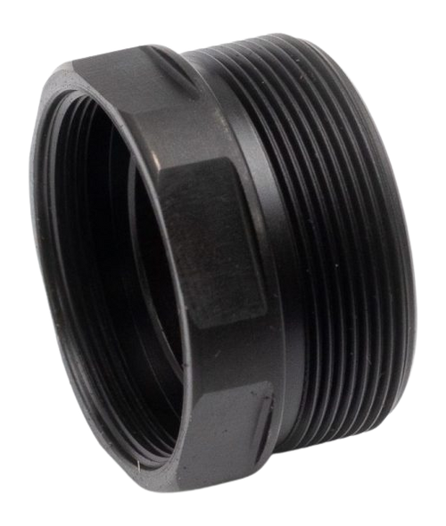 This is a suppressor mount adapter that replaces the rear end-cap of SilencerCo Omega and Harvester Big Bore suppressors. Features black nitride finish and includes a wrench for installation. Part of Area 419's patented Sidewinder modular brake system for self-timing compatibility.
