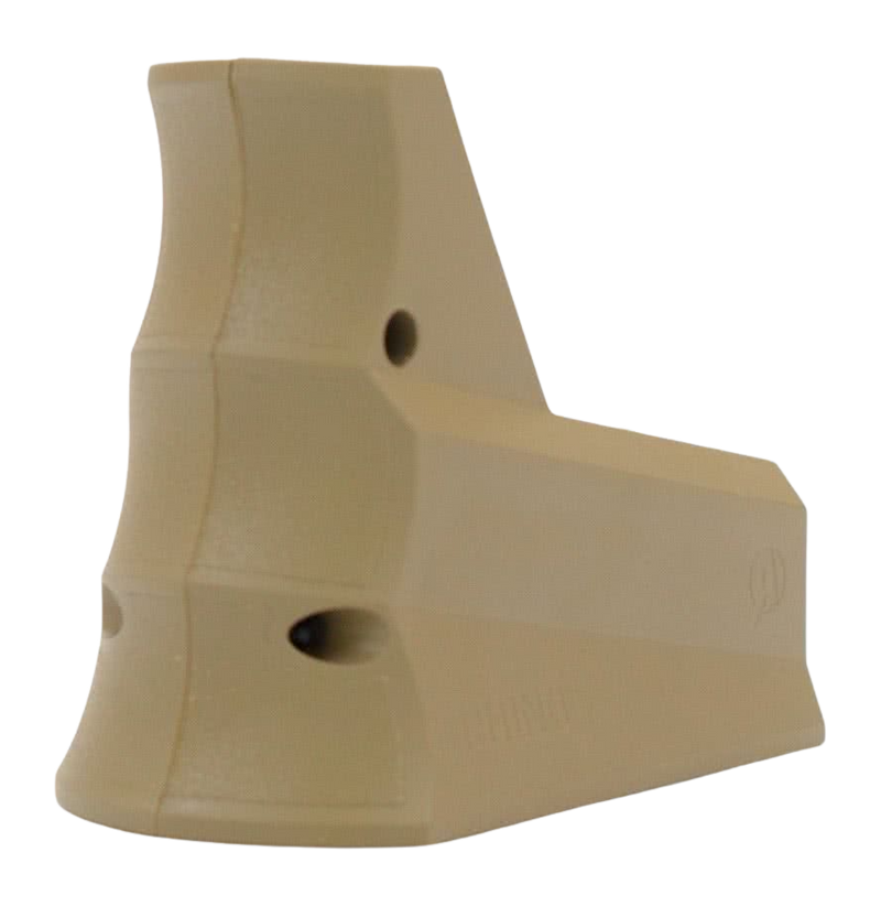 The Armaspec Rhino R-23 is a magwell accessory that combines a magazine funnel and grip in one unit. Designed to speed up magazine changes and improve handling, it features a flat dark earth (FDE) finish and is compatible with AR-15 platform rifles.