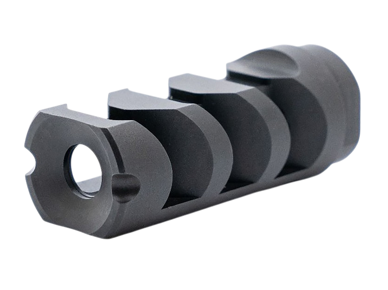 The Armaspec Fireball is a compensating muzzle brake designed for .308/300 Blackout rifles with 5/8x24 threaded barrels. The black nitride finish provides corrosion resistance and durability. This brake reduces felt recoil and muzzle rise through compensating ports while maintaining a compact profile.