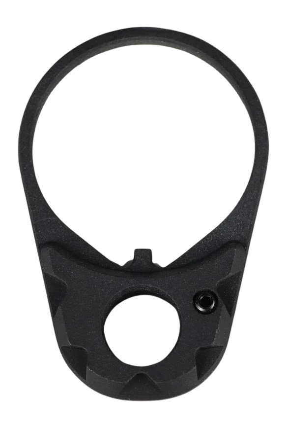 Quick-detach end plate manufactured from aluminum in black finish. This buffer tube accessory is compatible with mil-spec AR-15 platforms and installs via standard QD socket for easy attachment and removal of slings or other QD-compatible gear.