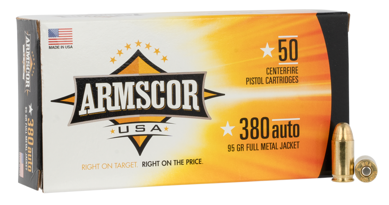 Armscor 380 ACP 95gr Full Metal Jacket Handgun Ammo, 50rd Box - FAC3802N