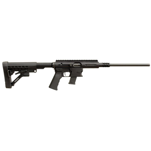 Semi-automatic rifle chambered in 10mm Auto with a 16.25" barrel and 15-round magazine capacity. Features a quick-change barrel system, AR collapsible stock, Picatinny rail for optics mounting, and aircraft aluminum construction with hard anodized finish. Weighs 5.5 lbs with an overall length of 29.5".