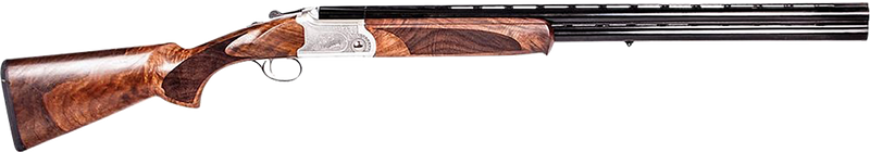 The ATI Cavalry is a break-action over/under shotgun chambered in 410 gauge with a 3" chamber and 2-round capacity. It features a 26" matte blued barrel with ventilated rib, silver engraved aluminum receiver, and fixed oiled Turkish walnut stock. Equipped with a single selective trigger, brass bead front sight, and includes 5 chokes.