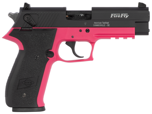 The GSG FireFly is a .22 LR semi-automatic pistol with a 4" barrel, 10+1 capacity, and DA/SA action. Features include a zinc alloy frame with integrated accessory rail, serrated slide, adjustable 3-dot sights, ambidextrous safety, and black polymer grips. This blowback-operated pistol weighs 24.6 oz and is suitable for training and sport shooting.