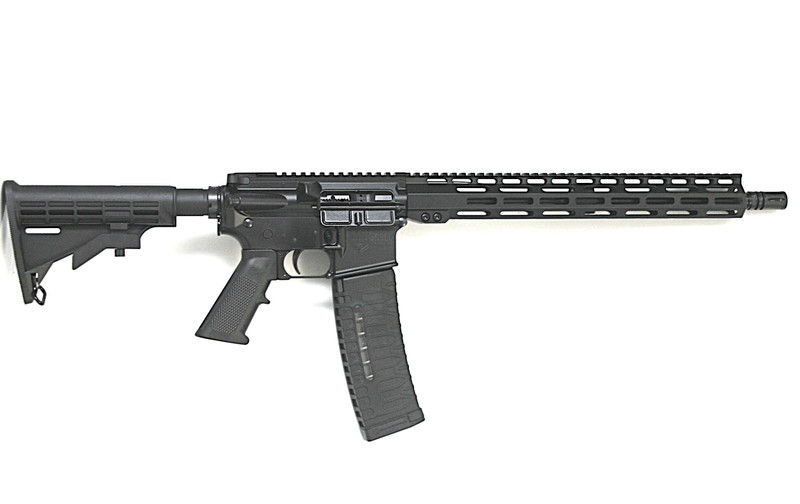 Semi-auto AR15 platform rifle chambered in 5.56 NATO with a 16" threaded barrel and 1-in-8" twist rate. Features a 15" M-LOK hand guard, Rogers Super Stock, aluminum receiver, and comes with one 60-round magazine. Overall length adjusts from 32.5" to 35.75" with a weight of approximately 6 lbs.