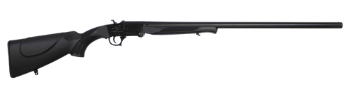 The ATI Nomad is a 410 gauge single-shot break-action shotgun with a 23" ventilated rib barrel chambered for 3" shells. It features a fiber optic front sight, camouflage synthetic furniture, matte black barrel, folding receiver, and includes two chokes (Modified and Full). Weighing 5.5 lbs with an overall length of 39", this lightweight shotgun is drilled and tapped for optics mounting and includes a saddle mount for accessories.