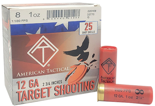 ATI Target Load shotshells in 20 Gauge with 2.75" casings deliver 7/8 oz of #8 shot at 1210 fps, designed for target shooting and clay sports. These lead shot rounds are ideal for practice at the range and competitive shooting applications. Sold in boxes of 25 rounds.