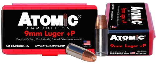 Atomic Ammunition 44 Rem Mag 240 grain Bonded Match Hollow Point rounds designed for precision target shooting. Loaded to 1500 fps muzzle velocity with 1199 ft-lbs of energy, these nickel-plated brass cases deliver consistent performance in 50-round boxes.