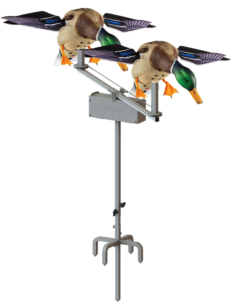 The Avian X PowerFlight Motion Stand features a patent-pending design that creates 180-degree left-to-right motion to simulate landing ducks and confuse wary waterfowl. Powered by a 6V Lithium-Ion battery with 12+ hours of runtime, it is compatible with most spinning wing decoy brands on the market.
