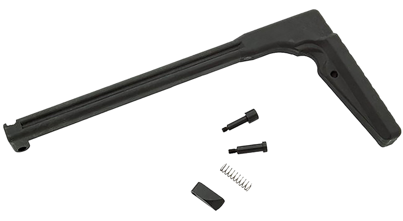 This folding stock kit allows B&T TP9 KH9 or P26 pistols to be outfitted with a compact stock and ships with all necessary hardware for installation. The black polymer construction provides durability while maintaining a lightweight profile, with dimensions of approximately 10.5" length when extended. Compatible with both MP9 and TP9 platforms.