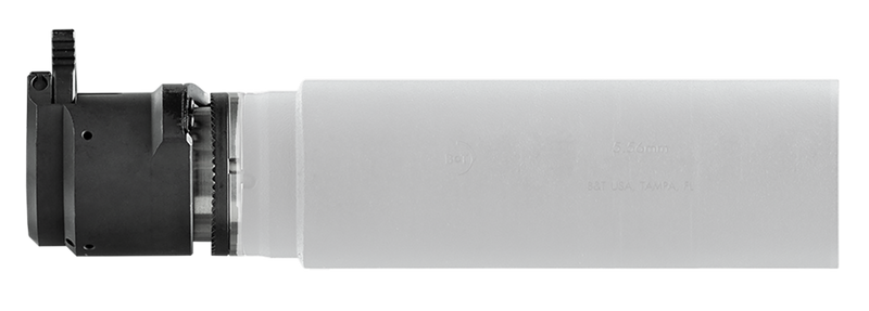 The B&T NATO HUB is a muzzle adapter designed for use with 1.375x24 TPI threaded suppressors and NATO-spec A2 flash hiders. Constructed of stainless steel, it features a gate lock and ratchet system for secure attachment and is compatible with suppressors used by NATO forces worldwide.