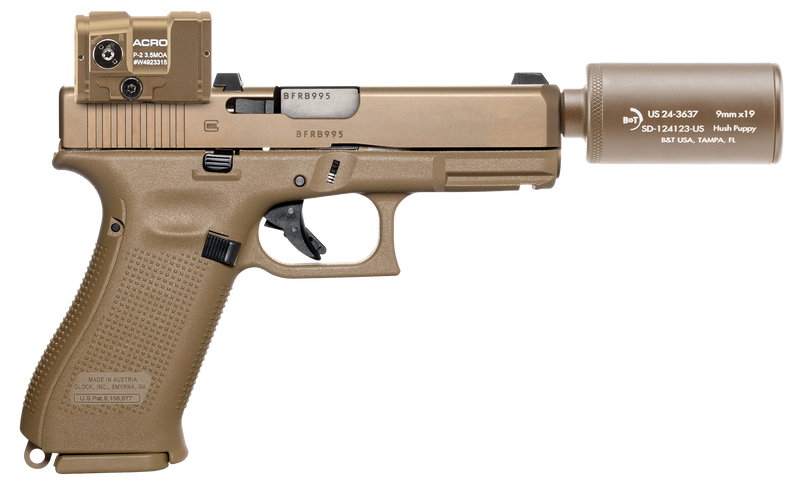 B&T Hush Puppy Kit 9mm Luger 4" 15+1 Pistol, Coyote Tan - HUSHPUPPYKITCTCSTM