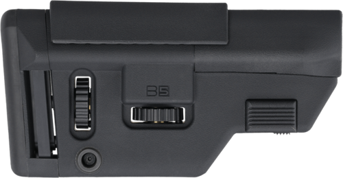 The B5 Systems Precision Stock is a collapsible rifle stock designed for AR-15 and compatible platforms. Constructed from durable polymer, it features a medium length of pull and wolf grey finish. Installation is via standard mil-spec receiver extension tubes.
