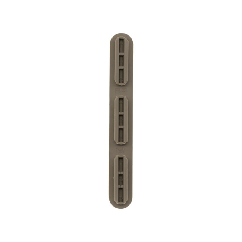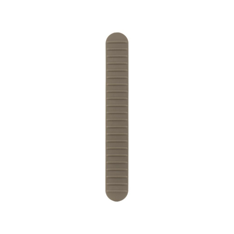 A low-profile M-LOK rail cover designed to fit most machined rails and polymer handguards. The soft non-slip material and ribbing provide extra traction and heat resistance with a press-in fit that fills 3 M-LOK sections. Each pack contains 4 covers manufactured from heat and chemical resistant material.