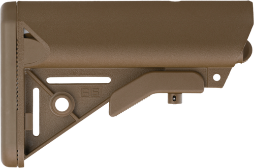 The B5 Systems Enhanced SOPMOD is a mil-spec buttstock designed for AR-platform rifles with mil-spec receiver extensions. Constructed with color-matched steel hardware, it features an ergonomic cheek weld, quick-detach sling mounts, sure-grip latch, and dual water-resistant storage compartments. Made in the USA with mil-spec materials and finishes, this stock is approximately 2-3 times stronger than prior SOPMOD designs due to increased resin and glass content.