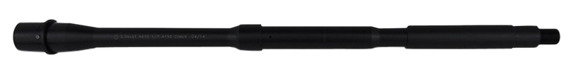 This is a 16" M4 carbine-length barrel chambered in 5.56 NATO/.223 Remington, designed for AR-15 platforms. It features a 4150 chrome moly vanadium steel construction with QPQ corrosion-resistant finish, 1:7" twist rate, and a threaded muzzle (1/2x28 pitch) for accessory mounting.
