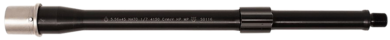 This is a 12.3" AR-15 compatible barrel chambered in 5.56 NATO with a 1:7" twist rate and carbine-length gas system. The barrel features a Hanson profile and QPQ corrosion-resistant finish with a 1/2x28 threaded muzzle. It is constructed from chrome moly vanadium steel and is ready for direct installation on AR-15 platforms.