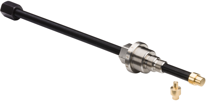 This baffle removal tool is designed for user-serviceable Banish suppressors in .22, .223, and .308 calibers with 5/8-24 TPI or 1/2-28 TPI threads. It features corrosion-resistant alloy steel construction with a piloted brass pusher tip to minimize contact wear on baffles during disassembly and cleaning.