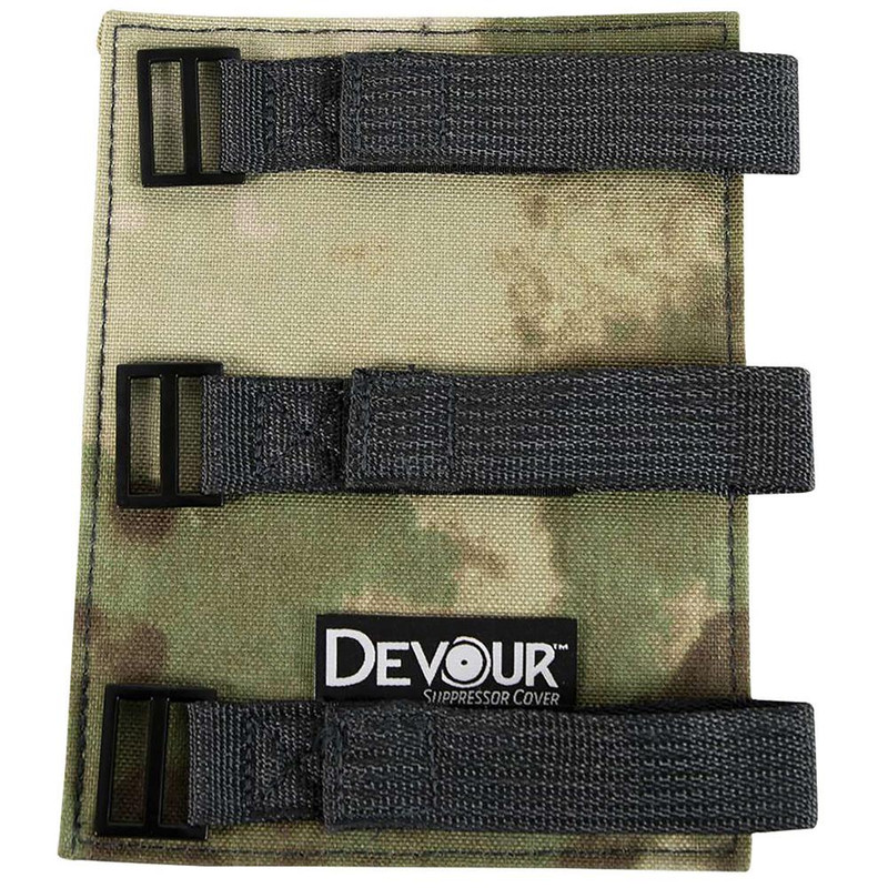 The Devour Suppressor Cover is designed to protect suppressors from heat damage, scratches, and dings during normal use. It features an industrial silica-coated material that mitigates optical mirage and allows for safe installation or removal of hot suppressors. The cover is easy to install and remove, enabling comfortable shooting from various positions without risk of burn injury.