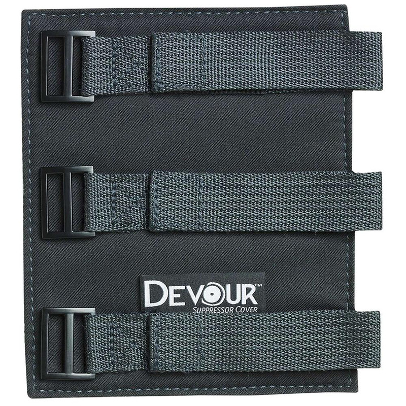 The Devour Suppressor Cover is designed to protect suppressors from heat damage, optical mirage, scratches, and dings during normal use. The silica-coated cover can be installed or removed while the suppressor is hot, preventing user burns and allowing comfortable shooting from various positions. This accessory is compatible with the Banish 30 suppressor and features an industrial-grade non-slip coating.