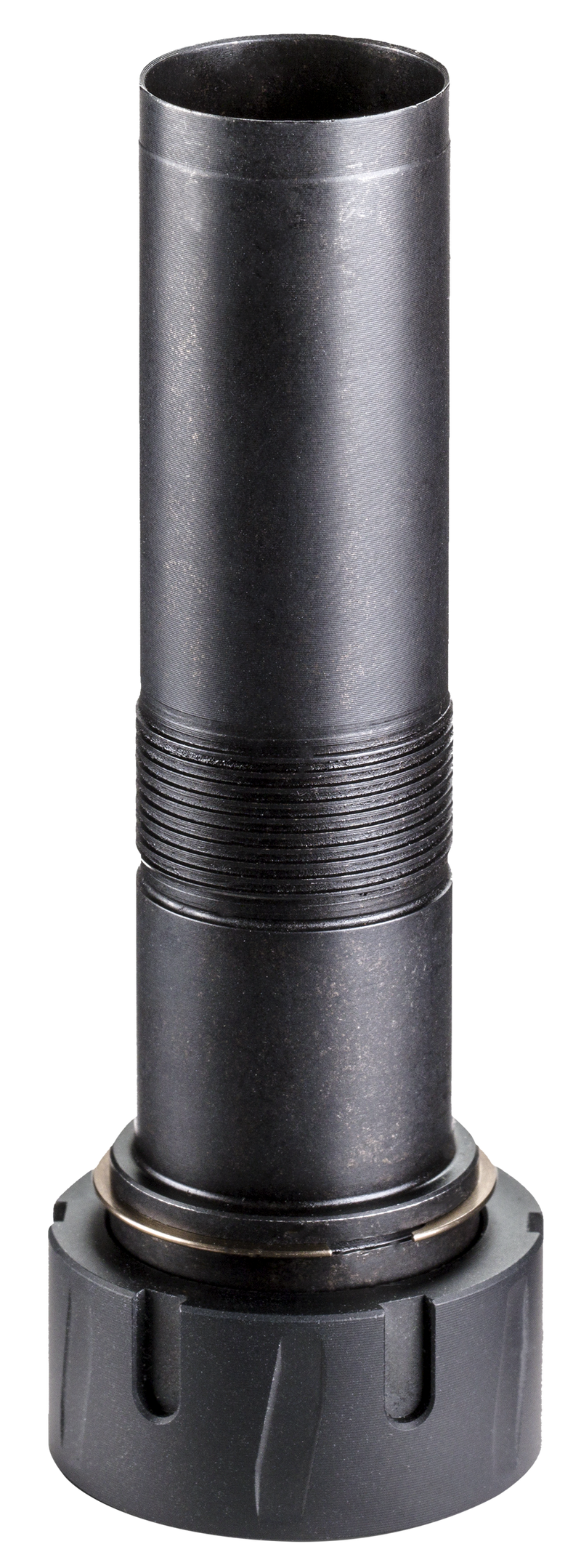 This is a choke mount adapter assembly designed for the Banish 12 suppressor, enabling secure attachment to Beretta Optima HP shotguns. Machined from high-strength 17-4 PH stainless steel and finished with black nitride coating for corrosion resistance and durability.
