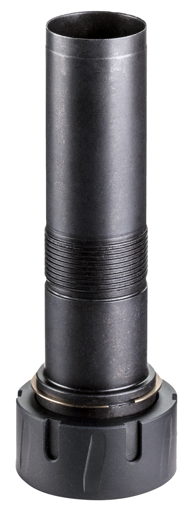 This is a choke mount adapter designed for use with the Banish 12 suppressor on Remington 870 shotguns. Machined from high-strength 17-4 PH stainless steel and finished with black nitride coating for corrosion resistance and durability. The adapter provides a secure attachment point for the suppressor to compatible shotguns.