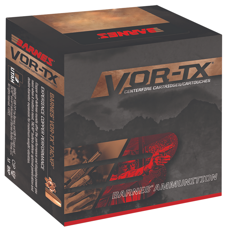 Barnes VOR-TX handgun ammunition in 454 Casull caliber with 250-grain XPB bullets designed for deep penetration and double-diameter expansion. This load achieves 1700 fps muzzle velocity and 1605 ft-lbs of muzzle energy, making it suitable for hunting and defense applications. Packaged 20 rounds per box, 10 boxes per case.