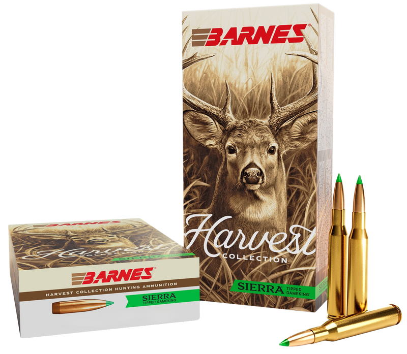 Barnes Harvest ammunition in 7mm PRC with 180-grain Sierra Tipped GameKing bullets designed for thin-skinned game hunting. Features brass casing, delivers 2960 fps muzzle velocity, and provides 3503 ft-lbs of energy for accurate, devastating terminal performance.