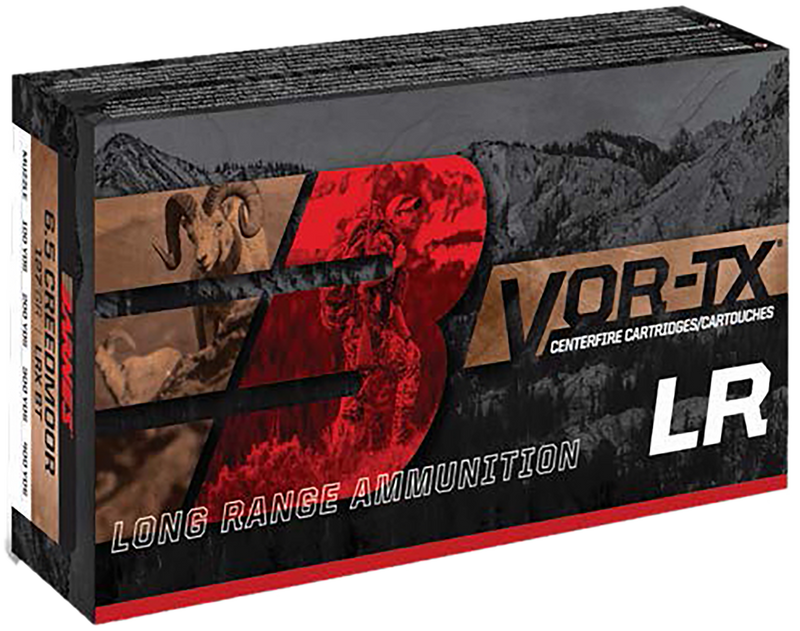 Barnes VOR-TX Long Range ammunition is loaded with premium all-copper 208-grain LRX boat tail bullets designed for precision at long range and on-game effectiveness. This 300 PRC cartridge delivers a muzzle velocity of 2860 fps and muzzle energy of 3779 ft-lbs, with a ballistic coefficient of 0.633. Each box contains 20 rounds of reloadable brass-cased, Boxer-primed ammunition manufactured in the USA.