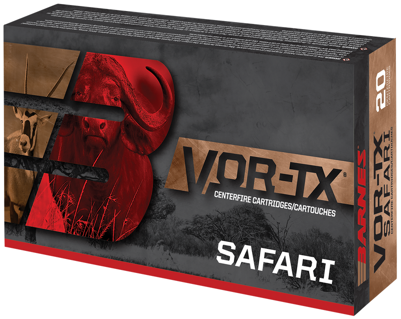 Barnes VOR-TX Safari .458 Winchester Magnum rifle ammunition featuring 450-grain Triple Shock X flat base bullets with a muzzle velocity of 2240 fps and 5015 ft-lbs of energy. This lead-free, reloadable brass caseammo is designed for hunting and delivers premium performance through stringent production standards.