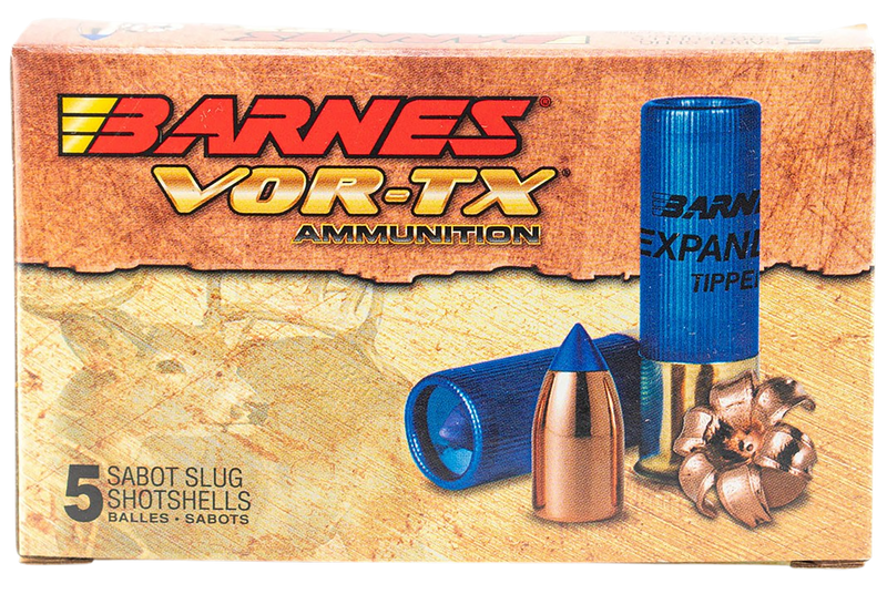 Barnes VOR-TX shotshell slugs in 12 gauge 3" feature a 438-grain all-copper expander tip design that opens on impact into six razor-sharp petals for wide wound channels and deep penetration. Loaded to 1550 fps, these slugs deliver rifle-like performance with high weight retention for hunting medium to large game. The polymer tip and copper construction provide reliable expansion and sustained momentum through tissue and bone.