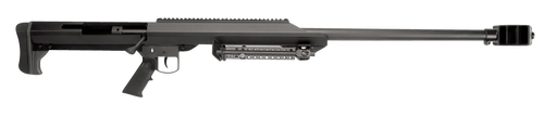 Semi-automatic rifle chambered in .416 Barrett with a 29" fluted barrel and manganese phosphate finish. Features a California-compliant blade grip, synthetic tactical stock, Picatinny rail, threaded barrel, and includes a lightweight QD titanium bipod. Weighs 32.72 lbs with an overall length of 57".