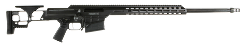 Bolt-action precision rifle chambered in .338 Lapua Magnum with a 26" fluted barrel and 1:9.4" twist rate. Features a fixed stock with adjustable cheek piece, Magpul MOE grip, optic-ready Picatinny rail, and threaded muzzle. Weighs approximately 12.3-13.9 lbs with an overall length of 48.5-49.4" and comes with one 10-round magazine.