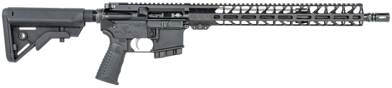 Semi-auto centerfire rifle chambered in 223 Wylde with a 16" 4150 chrome moly medium barrel and 1:7" twist. California-compliant model featuring a 10+1 capacity, optic-ready receiver, 6-position B5 Bravo adjustable stock, and manual thumb safety. Weighs 6.3 lbs with an overall length of 33"-36.25" depending on stock position.