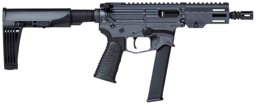 The Battle Arms Development Xiphos is a 9mm semi-automatic rifle with a 16" black barrel and 30+1 round capacity. Features include a combat gray Picatinny rail aluminum receiver, M-LOK handguard, black synthetic stock, adjustable black grip, and muzzle brake. Dimensions are 42.7" overall length with an 11" width.
