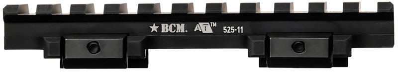 The BCM A/T Optic Riser 525-11 is a black anodized aluminum mounting accessory designed to elevate optics on Picatinny rail systems. This riser provides 0.525" of height and features 11 slots for secure attachment. It measures 4.5" in length and is engineered for precision rifle builds requiring elevated sight lines.