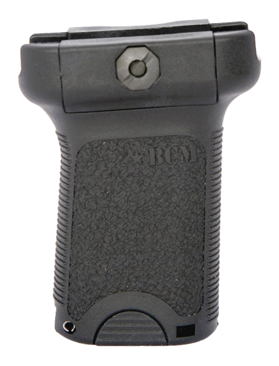 The BCM BCMGunfighter Short Vertical Grip is a polymer foregrip with aggressive textured finish designed for Picatinny rail systems on AR rifles. It features a compact short profile measuring 9.1 inches in length with a storage compartment integrated into the grip body. Installation is direct mount to any standard Picatinny rail.